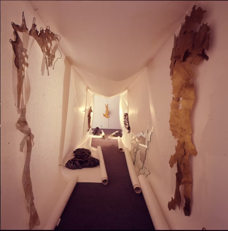Throughout his career, Fabro experimented with the expressive potential of various materials, ranging from traditional ones such as marble and iron to less conventional like glass and silk, each chosen for its specific sensory and symbolic qualities.