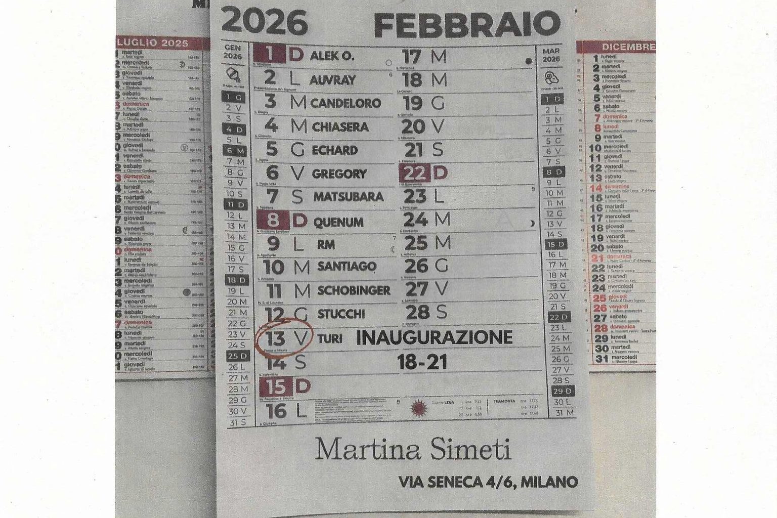 We are very happy to announce INAUGURAZIONE, the exhibition that on Friday 13 February will open our new space in Via Seneca 4/6, in a shared address with the Fondazione Archivio Turi Simeti.