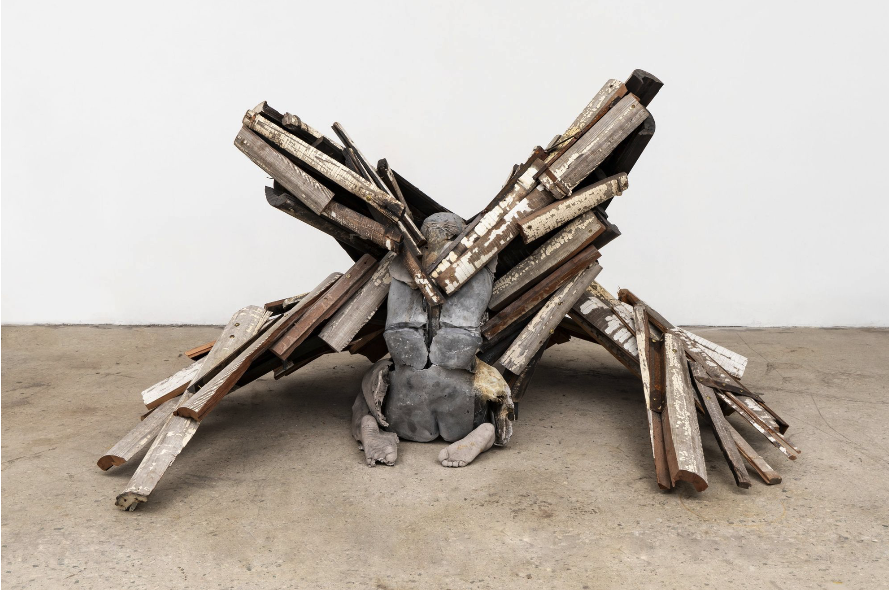 Chiffon Thomas’s practice is an interdisciplinary one, ranging across hand embroidered mixed media painting, collage, drawing, and sculpture. Identifying as a trans queer person of color, Thomas’ powerful figurative assemblages examine the difficulties faced by defining one’s identity in contemporary society. Through contorted figures and fractured compositions that float seamlessly between historical and contemporary styles and references, Thomas portrays a form of self-expression that puts human touch at the forefront of his art. Reminiscent of the diverse, mixed media practices exhibited by Robert Rauschenberg, Faith Ringgold and David Hammons, Thomas’ own application of materiality becomes a language for translating cultural references and personal experiences. Raised with a strong religious upbringing, Thomas’ work often grapples with conflicting beliefs, values, and desires, primarily using tactile methods of hand embroidery, collaged found material and paint to perform as an expressive visual language that interprets personal feelings of nostalgia, longing to belong, and affirmations of self-identity. Scenes from family photographs are deconstructed into sketches and then built back up with colorful fibers, stitch by stitch. A sense of texture and dimensionality is achieved through the varying weights of thread, which are sometimes densely layered and other times sparse. Domestic scenes appear to shift in and out of focus, resulting in visceral collisions of abstraction and clarity that invite viewers to decode the fraught relations between memory and reality, visibility and understanding.